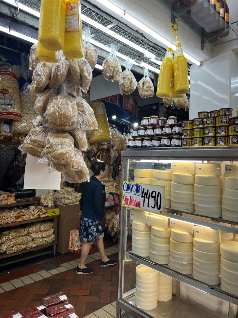 We were there early enough to avoid the rush of people, but my coworker assured me that as the course of the day went on, the aisles would soon be flooded with people, stopping for lunch at the in-market restaurants serving feijão tropeiro, a bean dish with pork and cassava flour. Every so often, I’d catch a waft of overripe fruit, roasted coffee, fresh baked pão de queijo (Brazilian cheese bread), or roasting meat.