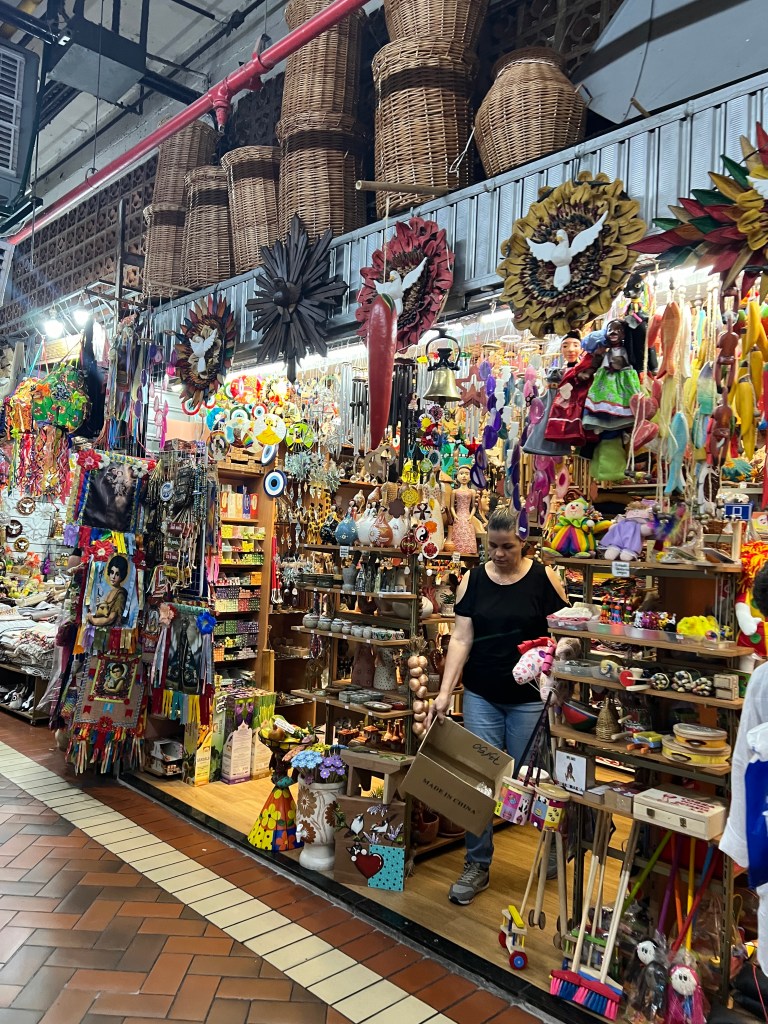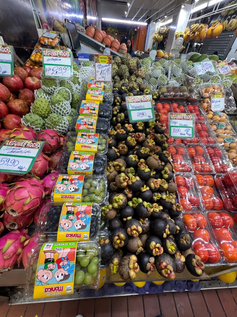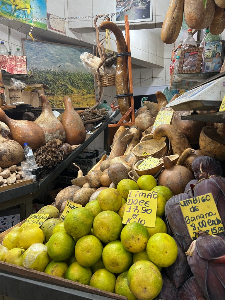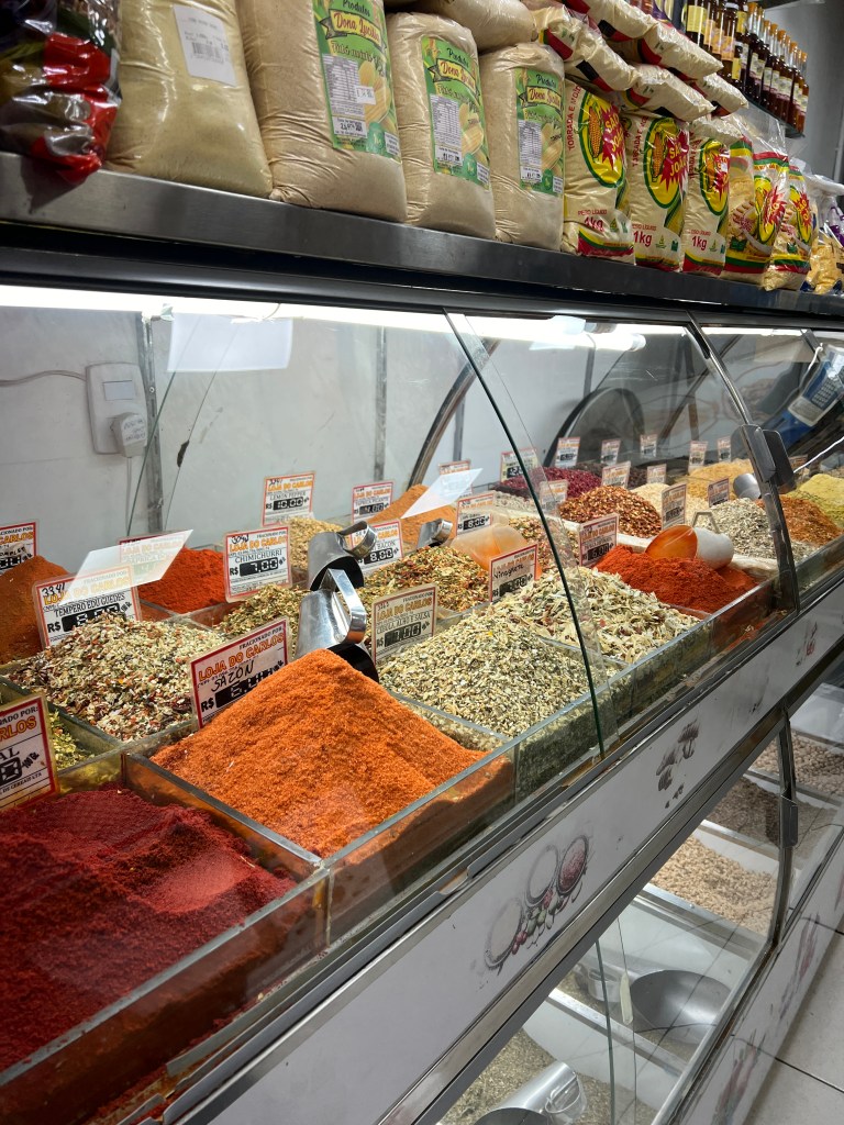 As soon as we entered the market, walking down from a top-level parking lot in a space that fills an entire city block, you see forking paths with stalls lining either side as far as the eye can see. Stacks of colorful packaged goods line shelves or hang from the ceiling of each vendor, signs in Portuguese dictate what’s inside and a price point. I was lucky enough to have my coworker there to play tour guide and translator – English is not commonly spoken and I had neglected to study even basic Portuguese phrases in advance of my journey. I also found myself making purchases without really knowing the true cost as I had also neglected to learn the exchange rate between USD and Brazilian Real (fortunately this was not an issue as the rate is 1:5.63).