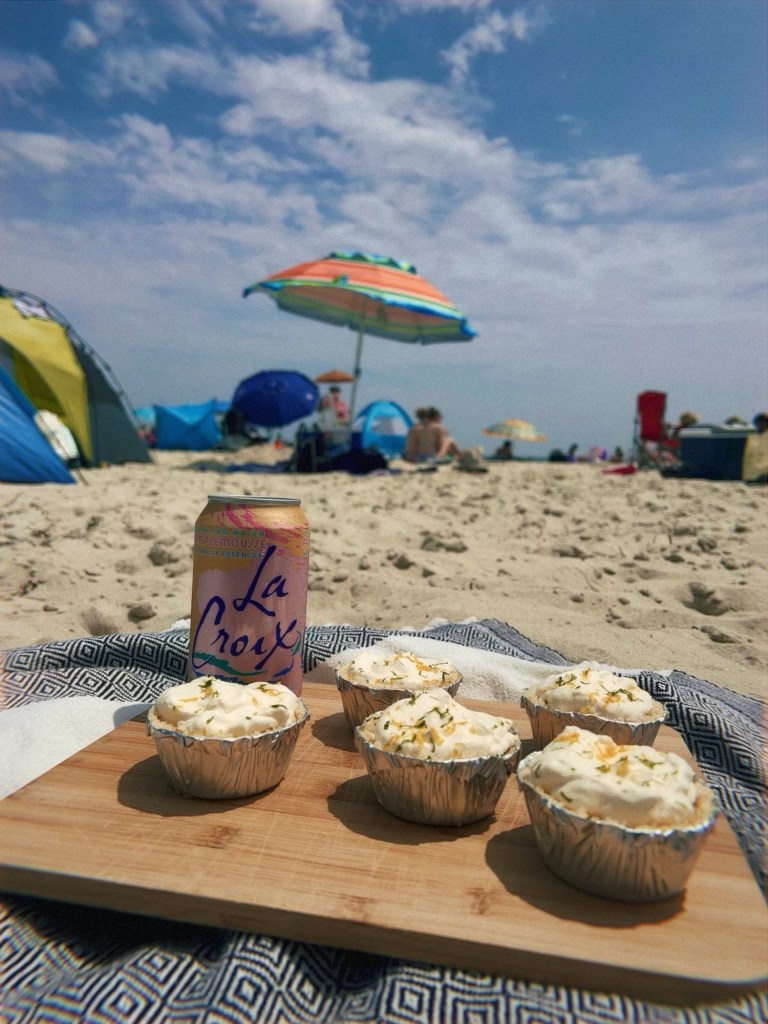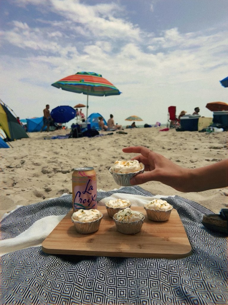 And here’s the pie — Atlantic beach pie, a perfect embodiment of summer on the shore. I made them miniature, easy for sharing and transporting to the beach. Bright citrus — both lemon and lime — sweetened condensed milk and egg yolks make a bright yellow custard that fills a ritz cracker crust. Whipped cream, zest, and flaky salt crown the top. Salty and sweet. Perfectly balanced. Each bite leaves you wanting more. Kinda like summer.