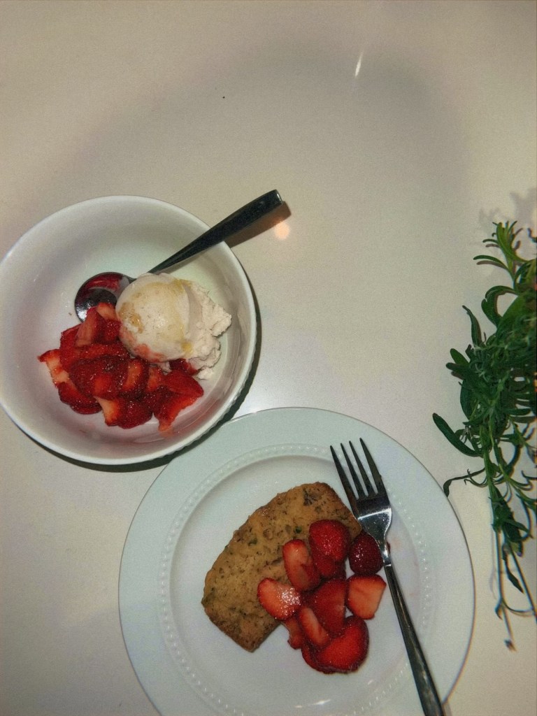 - Macerated strawberries with vanilla Oatly topped with lemon zest, flaky salt, and a drizzle of olive oil (the perfect dessert, I will fight anyone who says otherwise)
