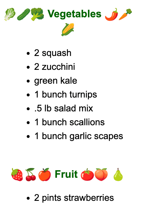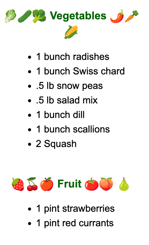 - Oops didn’t pick it up. My least favorite option, but sometimes unavoidable. Still, never fear! All leftover produce from the CSA is donated, so nothing really goes to waste.