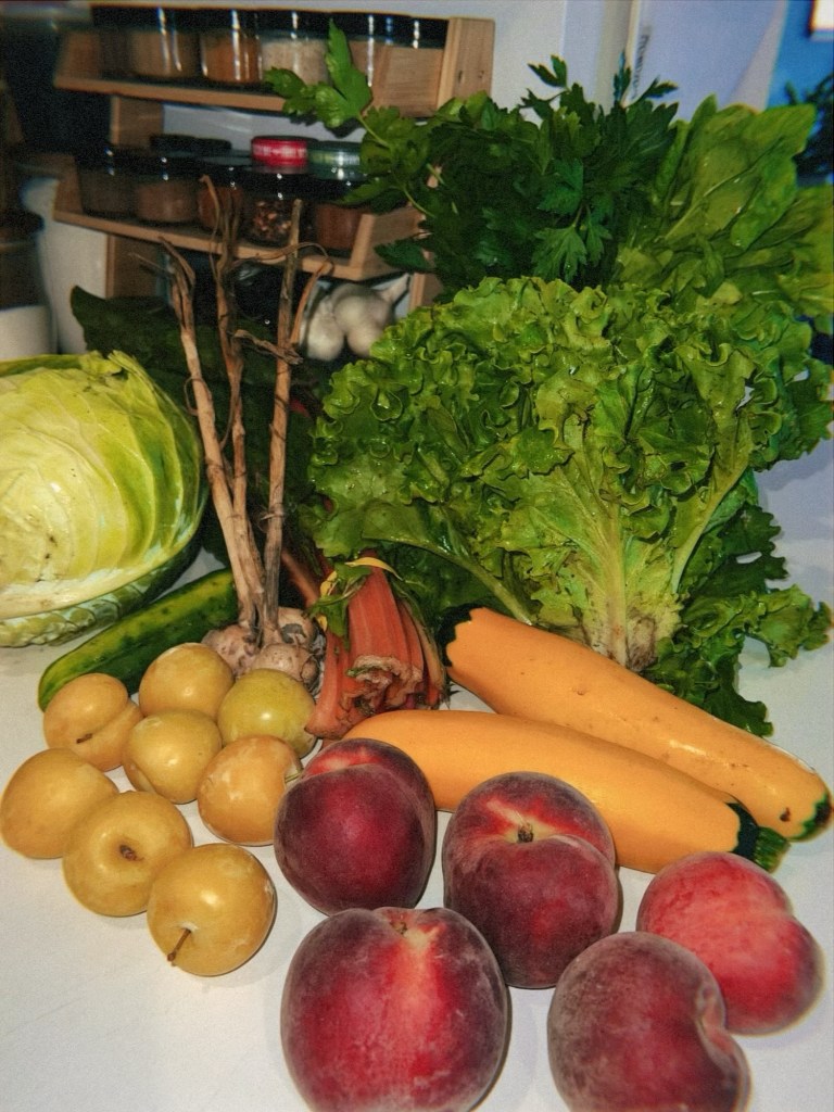 Mid July is peak summer and that came across in full force with the CSA from weeks 5 and 6: we had the usual suspects of courgettes and cucumbers, stone fruits, and fresh peas of all varieties, as well as some special treats like fresh raspberries, beets (!) and our newfound favorite: swiss chard.