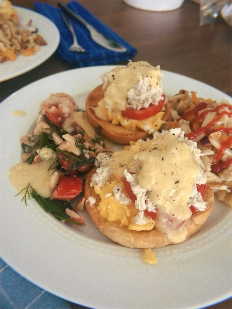 - Summer Beans with Corn Aioli – we tweaked a Molly Baz original to use sliced heirlooms instead of cherry tomatoes and it worked perfectly. The next day we experienced the sweetest kind of serendipity: being able to make a full blown meal without going to the store. We somehow had everything on hand to make an invention of our own: Crab Benedicts with corn aioli instead of hollandaise sauce, served with breakfast hash browns (featuring CSA peppers and onions).