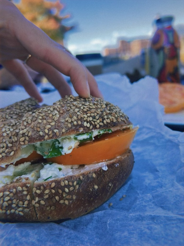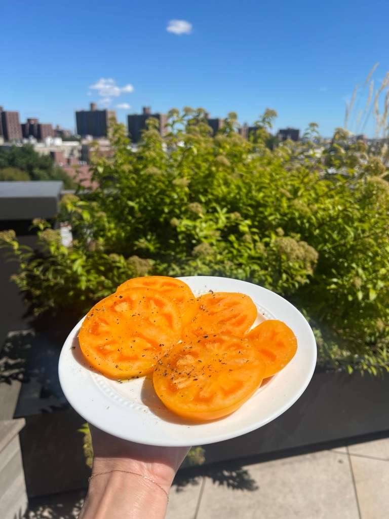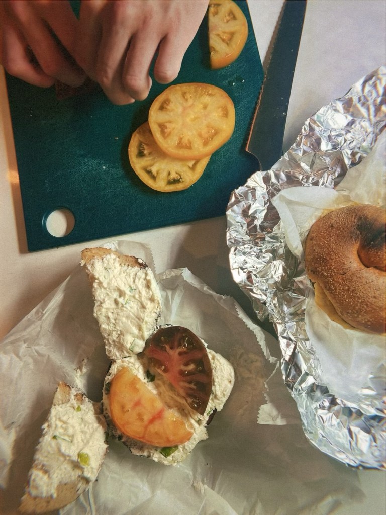 - Hands down, my all-time favorite tomato application is freshly sliced heirloom on a bagel with cream cheese. My go-to bagel order is a toasted sesame with scallion cream cheese. On multiple occasions, I took my bagel home and topped it with a slice of peak summer CSA tomato. It is always *chef’s kiss*.