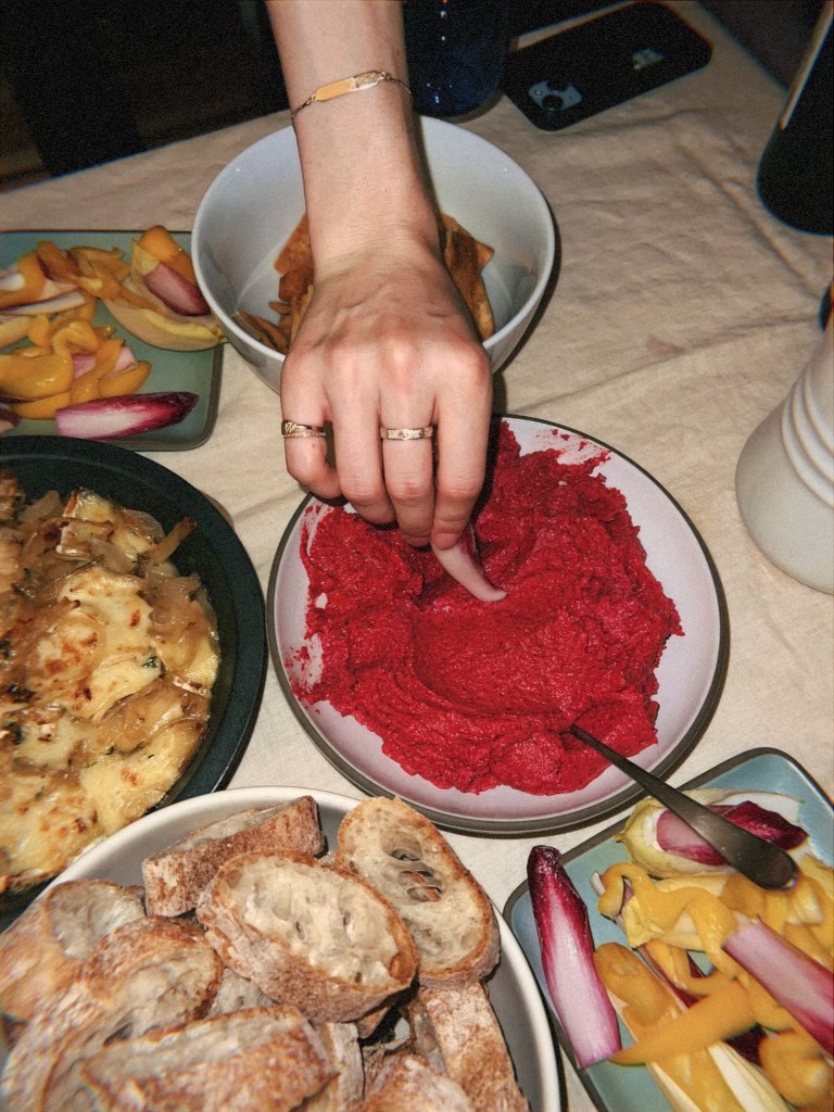 This recipe is on this list for a few reasons. First, it’s a fun way to use up a beet, especially for folks who aren’t beet fans. I am a beet fan (roasted beets with goat cheese in a salad – yes PLEASE), but not everyone is! Second, it’s an excellent vegan appetizer for your plant-based friends. And last, but not least, it is visually stunning. Pink isn’t a common color on the dinner table, much less hot pink, and this hummus stands out.