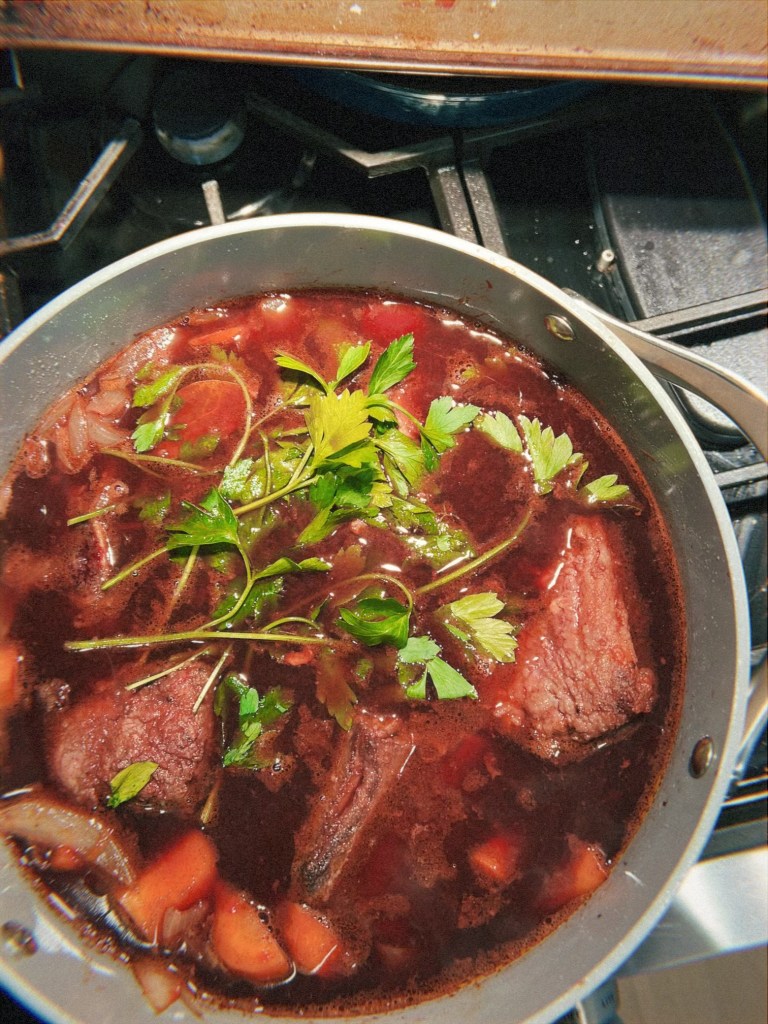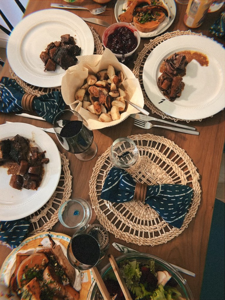 We did Thanksgiving in Curacao this year, so in advance of our trip, I figured I would kill two turkeys with one Friendsgiving bonanza. We needed to use up the last of our CSA ingredients before our trip and I wanted a chance to enjoy some Thanksgiving flavors since we were unlikely to enjoy a turkey dinner beach-side. So, we decided to cook up the beef shortribs from our CSA beef share – these had been waiting in the freezer for a special occasion. Dev took the lead on the short ribs and I prepped the sides: butternut squash with whipped tahini, roasted potatoes, a beet and apple salad, and cranberry sauce. It was a sweet ending to our CSA season (or so I thought…)